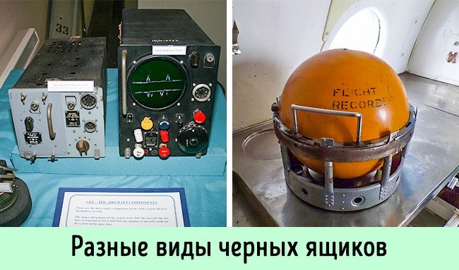 - Перші бортові самописці були прямокутними і чорними, як на фото зліва.