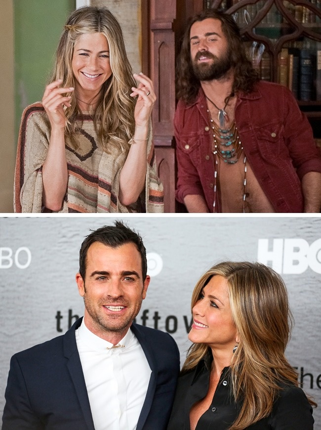 Пара познайомилася на зйомках фільму «Жага мандрів», обидва на той момент вже пережили серйозні розставання. Кажуть, що Еністон у цьому шлюбі веде себе зовсім інакше і навіть прощає чоловікові його серйозні промахи. Разом Джастін і Джен вже 7 років. Вони рідко говорять про свої почуття і намагаються трепетно оберігати їх.
