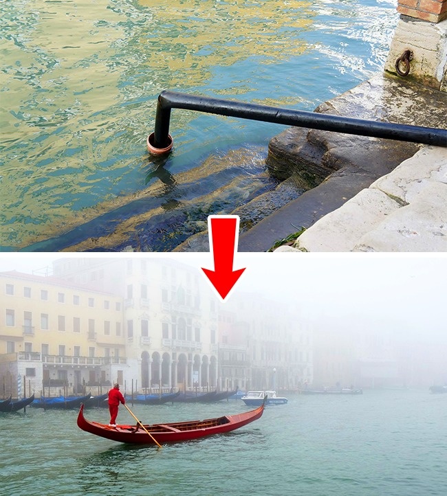 У Венеції немає каналізації, кажуть, у неї навіть немає сантехніків. Всі відходи змиваються прямо в канали. Але вони прокладені так, що припливи забирають стічні води в море, тому вода в каналах завжди чиста. Але під час сильних відливів запах і справді може з'явитися.