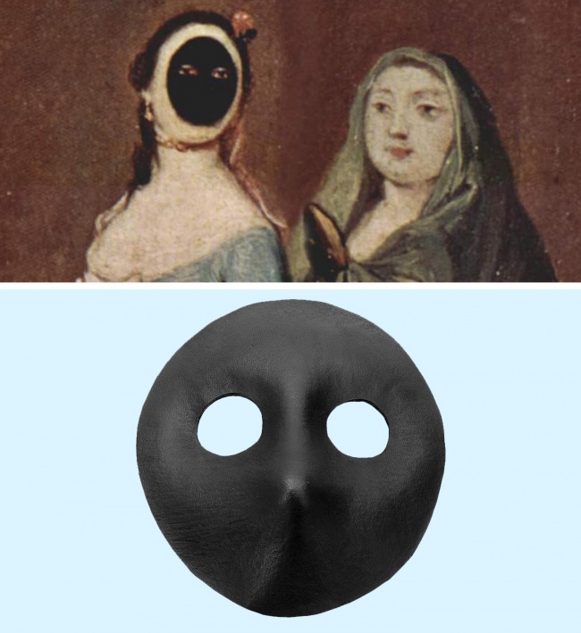 У ті ж часи у Венеції існувала маска для жінок, при погляді на яку не відразу зрозумієш, як вона трималася на обличчі. Називалася вона «моретта», але іноді її називали «німа служниця» або «отрада мужів». Напевно, ви вже здогадалися, що усередині маски був спеціальний стрижень, який вставлявся в рот, позбавляючи жінку можливості говорити. Це вважалося дуже загадковим.