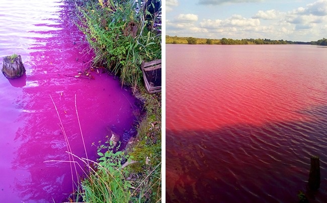 Ось такий рожевий колір води в міському водосховищі могли спостерігати жителі одного російського міста