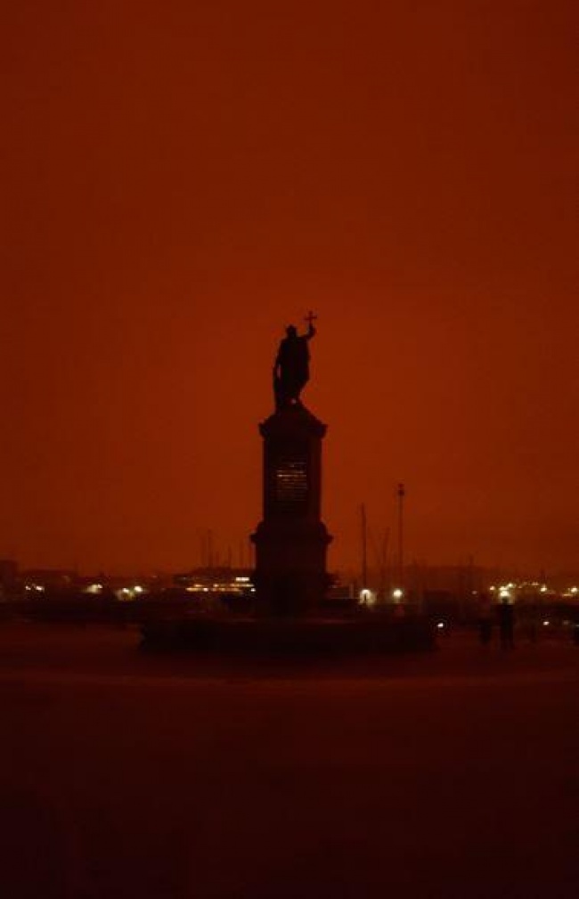 Цей іспанський місто Хіхон знаходиться в 100 кілометрах від лісової пожежі. Фото зроблено в 10 годин ранку