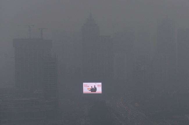 Китай. Яскравий рекламний щит потопає в густому смогу