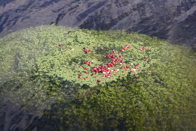 Журавлину вирощують на спеціальних плантаціях (чеки) в болотистій місцевості. У ягодах є невеликі повітряні камери, що і при дозріванні вони спливають на поверхню. При зборі на плантації пускають комбайни, які збивають воду, від цього зрілі ягоди відриваються, після чого їх збирають спеціальною сіткою.
