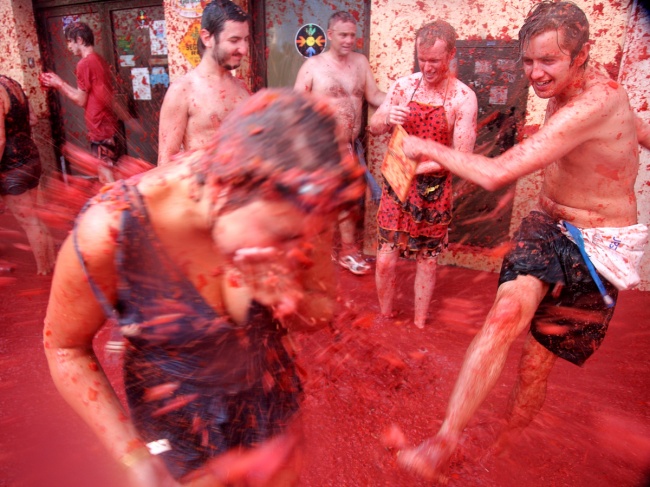 В останню тиждень серпня в іспанському місті Буньол (Bunol) проходить фестиваль під назвою Томатина (La Tomatina). З феєрверками, музикою, танцями та частуванням. Але головне, десятки тисяч учасників з різних країн приїжджають для участі в битві, єдиною зброєю в якій служать томати.