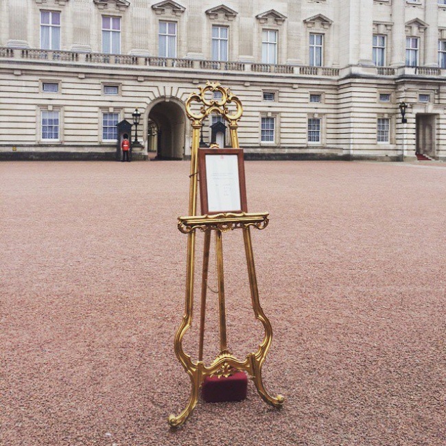 Про те, що народилася дитина, прийнято повідомляти вже полюбилися всім способом. Біля палацу виставляється позолочений мольберт, на якому прикріплений аркуш з надрукованою інформацією про те, коли народилася дитина і якої він статі. Також цю функцію виконує і глашатай, який сповіщає людей на вулицях Лондона. Традиційний мольберт ж навіть стає своєрідною пам'яткою на деякий час. А подружжя Кембриджських — перші, хто став повідомляти про народження дітей ще й через пресу.