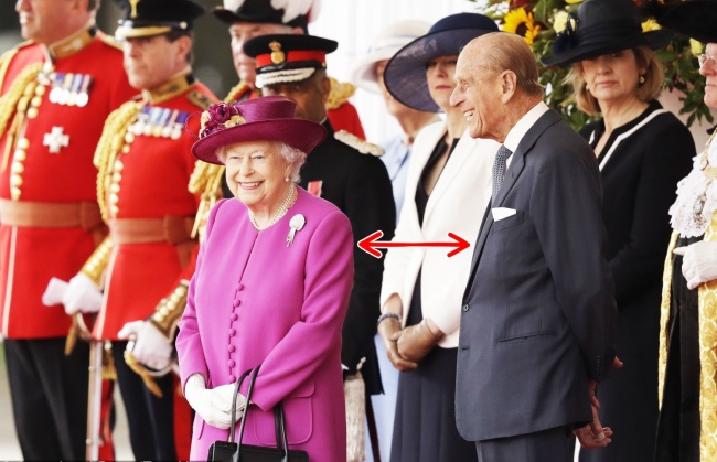 Королівська родина ходить і розсідається також у певному порядку. Так, чоловік Єлизавети II не може йти поруч з нею, він практично завжди знаходиться трохи позаду. Також існує особливий ритуал, до якого звертаються під час розсаджування: спочатку сідає Єлизавета II з герцогом Единбурзьким, потім принц Чарльз з дружиною, а після них принц Вільям з герцогинею Кембриджською.