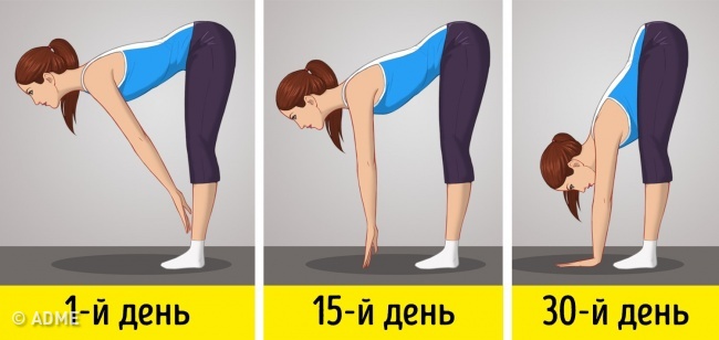 Якщо результат вас не задовольнив, не поспішайте бити тривогу. Нахиляйтеся 30 разів кожен день, і через місяць вас чекає сюрприз.
