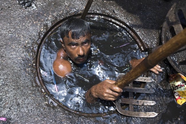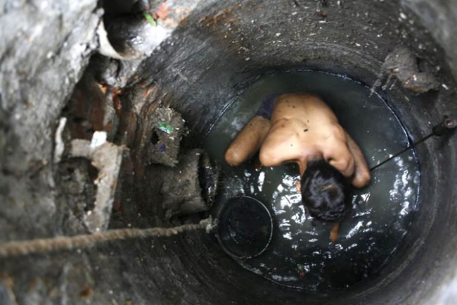 Індійським каналізаційних працівникам точно не позаздриш. Їх робочий день триває 12 годин, і весь цей час доводиться сидіти в люку, заповненому відходами. Робочі використовують металеві скребки, мотики або свої голі руки для отримання мулу з дна каналізації. Всі підняті з люка скидають нечистоти посеред вузької дороги. Чистильники не мають захисного одягу і часто працюють просто в трусах. За цей пекельний працю вони отримують $ 5 на день.