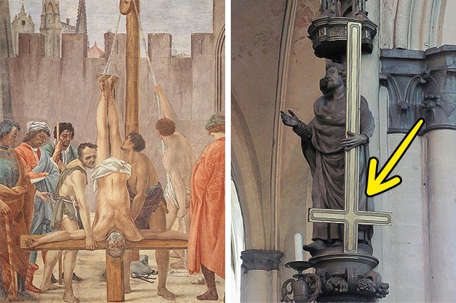 Цей символ вважається потужним антихристиянським знаком, хоча в нього й інша сторона: за переказами, апостола Петра хотіли розіп'яти, як і Ісуса, але той сказав, що не гідний загинути так само, і попросив розіп'яти себе вниз головою.