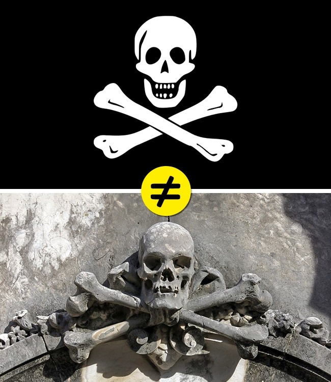 Піратський ж символ не пов'язаний з цією історією. До речі, у морських розбійників не було єдиного прапора, а «Веселий Роджер» був знайомий пірата Едварда Инглэнда. Популяризував череп і кістки автор «Острова скарбів» Роберт Стівенсон.
