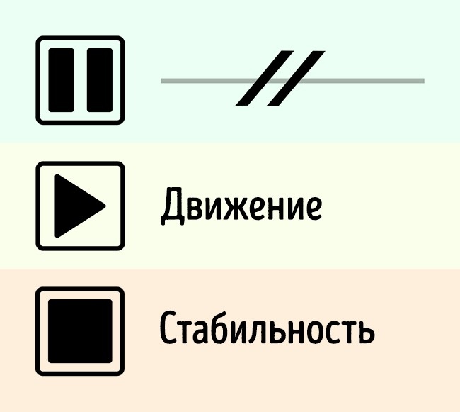 У будь-якому випадку логіка значків «стоп» і «плей» така: квадрат — стабільна, стійка форма, а трикутник символізує рух. Знак «пауза» стався від музичного значка «цезура», який служить для поділу музичних фраз. Кнопка запису червона, щоб ніхто її випадково не натиснув і не стер що-небудь важливе.