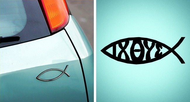 У часи гонінь християни не могли відкрито писати ім'я Ісуса. Тому вони придумали писати слово «іхтіс» або малювати рибу. Ймовірно, ви бачили цей знак на багажниках автомобілів. По всій імовірності, машина належала християнину.