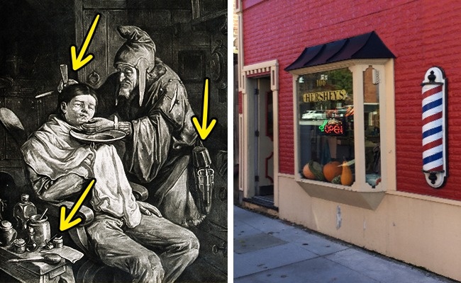 У минулі часи кожен перукар був трішечки лікарем — міг в разі чого і кровопускання зробити, і зуб видерти. Так що червоний колір символізував кров, а білий — бинти. Не дуже весела історія. Пізніше до двох кольорах стали додавати синій.