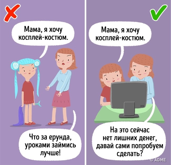 У кожної дитини своє уявлення про ідеальних мамі і татові, однак головне, що батьки повинні зробити в подібній ситуації, — це змиритися з тим, що вони не відповідають вигаданого ідеалу. Не потрібно підлаштовуватися під дитину, інакше він почне вити з вас мотузки. Краще поговоріть з ним як з дорослим: розпитайте, чим саме він незадоволений, і поясніть, що не всі з цього ви можете виправити. І соромитися тут абсолютно нічого.