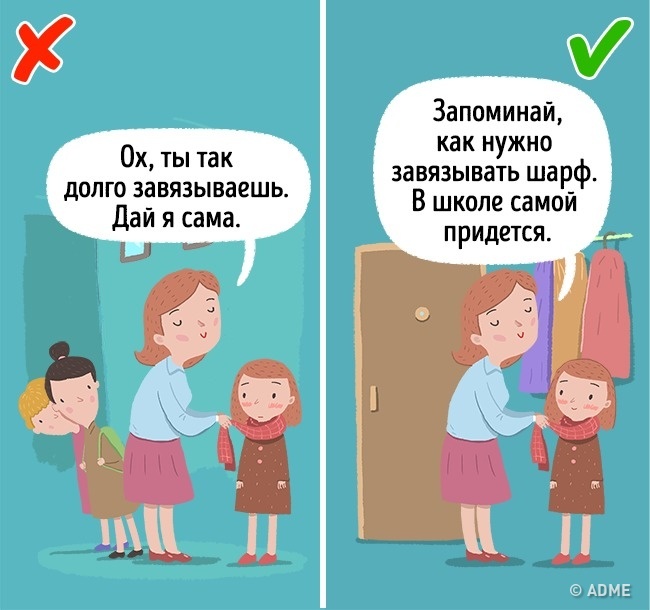 Немає нічого страшного в тому, щоб вести за руку або застібати курточку 5-річному малюкові, але дітям старше 10 років це здається жахливим ганьбою. Не тільки тому що вони хочуть бути самостійними, просто з-за ваших «сюсюкань» над ними запросто можуть сміятися в школі. Якщо ви хочете, щоб дитина відчувала себе комфортно, стримувати свої пориви на публіці і проявляйте турботу будинку.