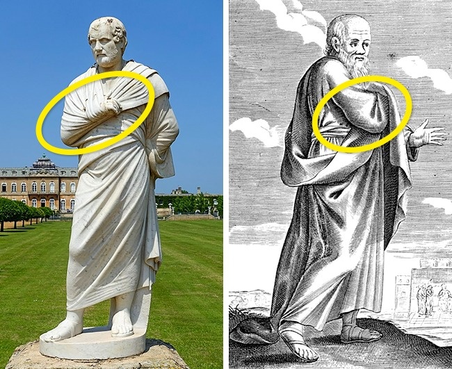 Як ми дивимося на людину, який старанно сякається в громадському місці? Ось приблизно так само в VI столітті до н.е. стародавні греки дивилися на тих, хто не ховає руки в складках туніки під час спілкування. Особливо якщо це публічний виступ. Висунув руки — проявляєш грубість: ось такі були порядки.