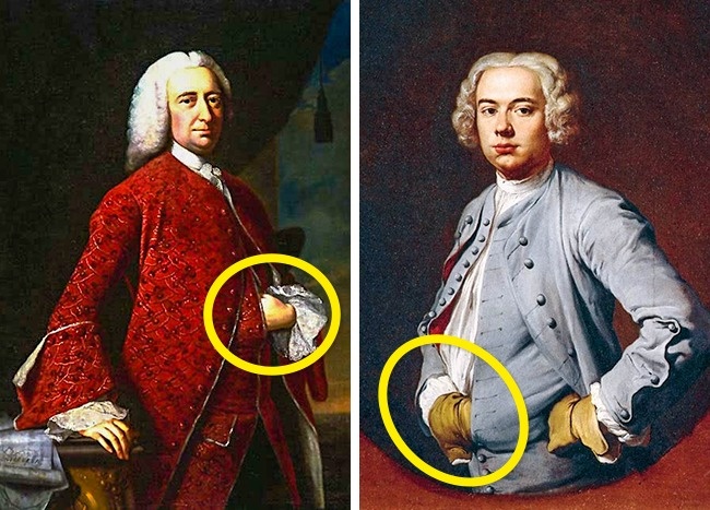 У XVIII столітті у вищому світі Західної Європи відродилася мода на античні твори. Орієнтуючись на уявлення давніх греків про хороші манери, художники почали зображати знатних людей на портретах з рукою, захованої за одяг. З часом цей жест почав асоціюватися з людьми вищого стану, освіченістю, хорошими манерами, відмінним почуттям гумору і піднесеним характером.