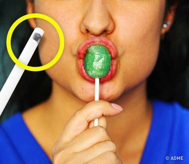 Призначення цього дивного отвори просте, хоча і виглядає загадково — в гарячому стані карамель трохи затікає в щілину і завдяки цьому льодяник щільно тримається на паличці.