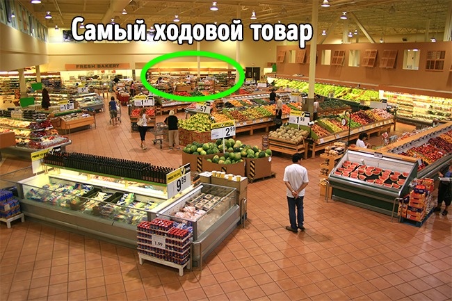 Це тільки з вигляду може здатися, що товари розташовані хаотично. Зазвичай в торговому залі найбільш ходові товари знаходяться не на початку, а в середині вітрин. Але поки доберешся до головного, що так і покладеш в кошик. У результаті покупок стає більше.