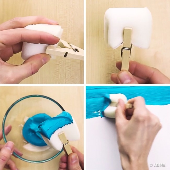 З прищіпки і шматочки губки можна швидко зробити зручну кисть для фарбування ділянки стіни або полотна.