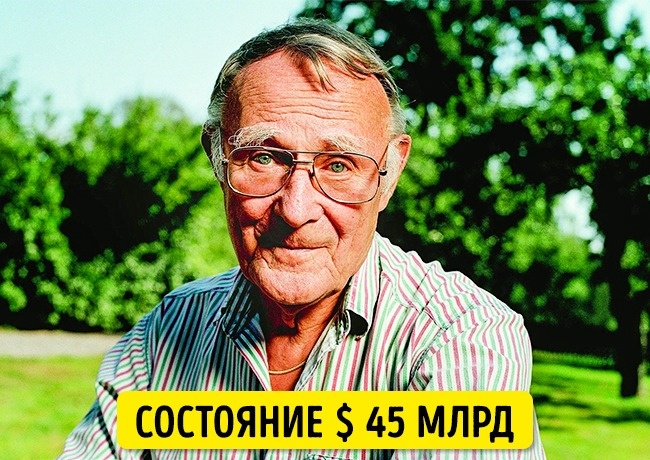 Один із самих багатих людей у світі, засновник IKEA літає виключно економ-класом, купує одяг на розпродажах і в секонд-хендах, а до недавнього часу водив Volvo 1993 року випуску. За схильність до економії недоброзичливці називають Інгвара «дядечком Скруджем». Але selfmade-мільярдер вважає вміння економити своєю перевагою, а залежність від дорогих речей — поганою звичкою.