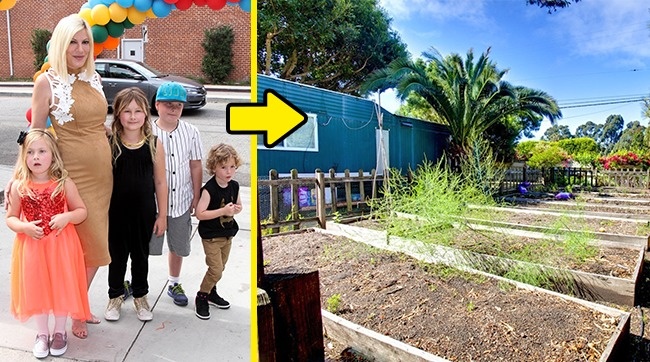 Зірка 90-х Торі Спеллінг кілька років тому продала розкішний будинок і переїхала в бунгало. На великому городі актриса вирощує фрукти і овочі для своєї сім'ї. За її словами, у світі немає кращого місця для того, щоб займатися вихованням дітей, яких у актриси 5, з чим ми її щиро вітаємо! А ще у Торі проживають вельми незвичайні вихованці — курча Коко і порося Мускатний Горіх, які є повноцінними членами великої родини.