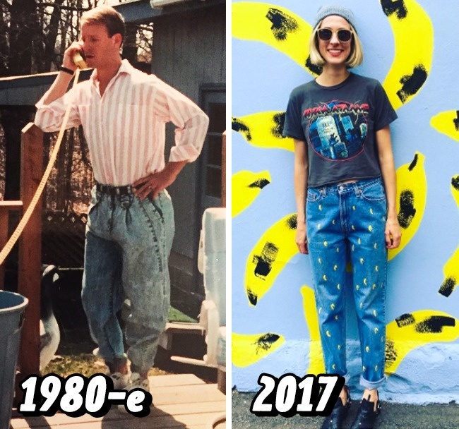 Джинси «банани», джинси «піраміди» — назви супермодних широких штанів, звужених донизу. Ними «хворіли» не тільки дівчата, але й хлопці. Сьогодні вони знову в моді — але тільки на дамах.