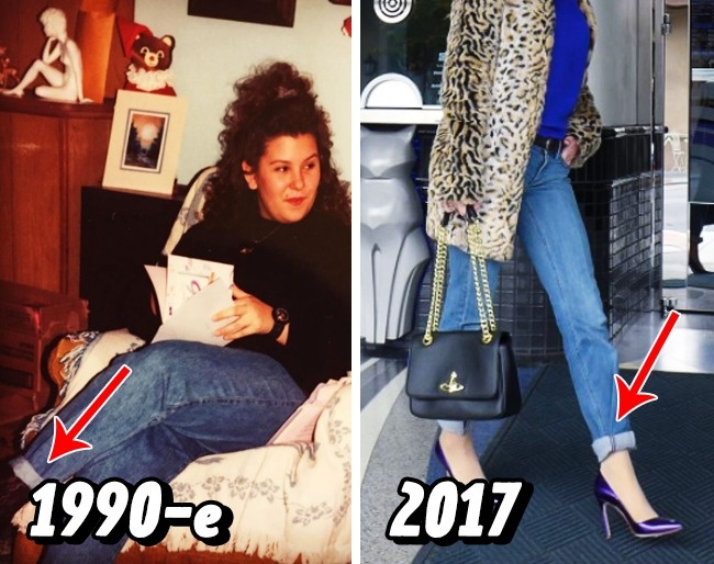 У 1990-і ми робили невеликі закоти на джинсах «пірамідах» або бриджах. Сьогодні укорочені штани в моді, і в них можна перетворити звичайні джинси завдяки особливо широким отворотам.