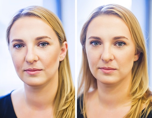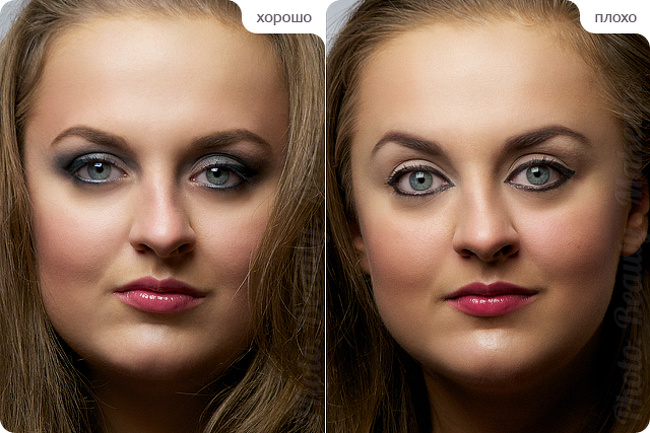 Пудра і тональник - речі рятівні й потрібні. Якщо використовувати їх грамотно. Перебір в кількості або нехтування якістю коштів може призвести до сумних результатів. Якщо на фото зліва шкіра виглядає неприродно і неакуратно через занадто щільного шару пудри, то праворуч обличчя світиться свіжістю і охайно.