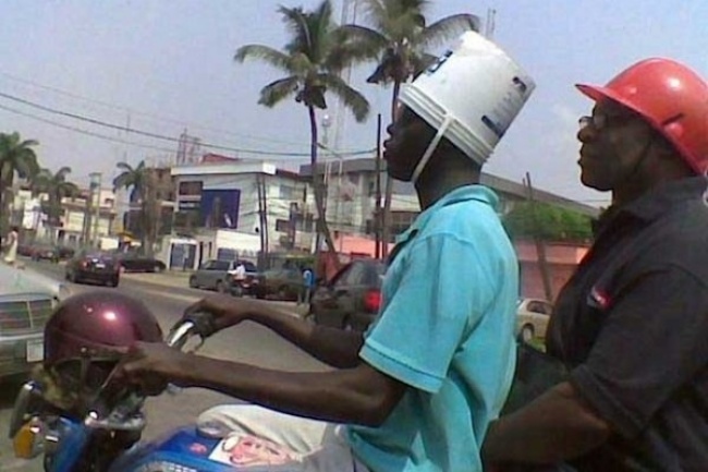 Замість мотошлема можна одягти на голову відро з-під майонезу або морозива