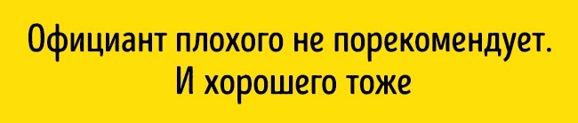 Звичайно ж, все вище перераховане не є «єдиним зводом правил офіціантів». У сумлінному закладі вас обслужать з душею і без підступу. Але краще бути трохи підозрілим, ніж наївним малим.