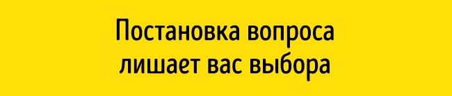 Існує правило «закритого питання», яким успішно користуються як в ресторані з фастфудом, так і з мішленовської зіркою. Працює він так: ви не встигли вимовити й слова про напій, як вам задають питання: «Вам червоне або біле вино, мсьє?» Тепер вам незручно відмовлятися від наданого вибору, навіть якщо ви взагалі планували є всі всухом'ятку.