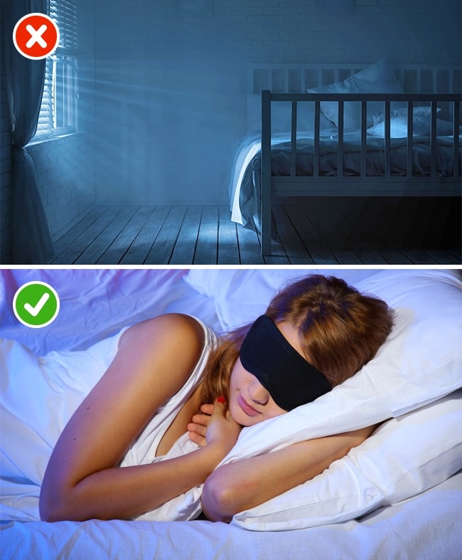 Навіть найменший джерело освітлення, будь то приглушене світло каганця або гарячі індикатори на електроприладах, заважає хорошому сну — чим темніше в спальні, тим якість сну буде краще.