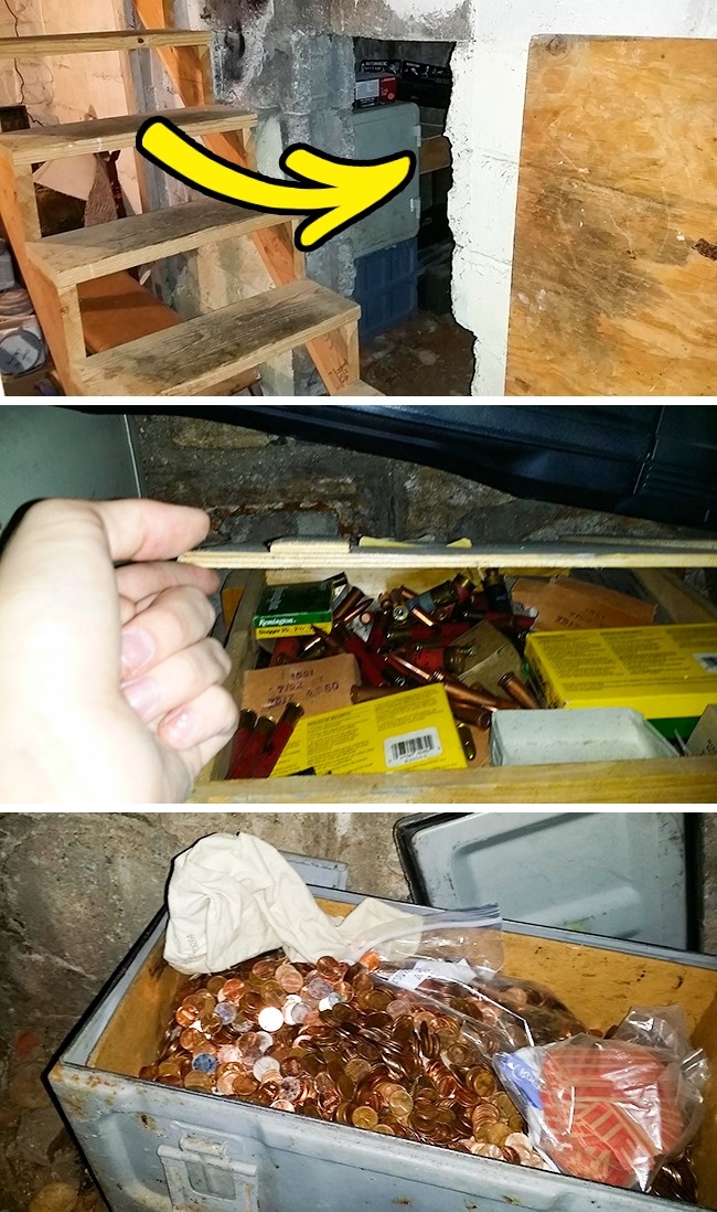 За перегородкою перебував пролом в стіні, всередині якого чоловік знайшов безліч патронів, дрібних монет і інструментів, але там не було зброї. Інші користувачі припустили, що цей тайник належав людині, який чекав кінця світу і вірив, що патрони стануть новою валютою.