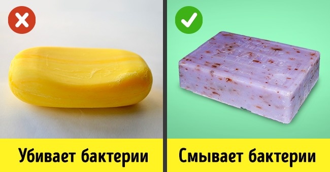 Насправді: мило тільки змиває бактерії, не вбиваючи їх. Миття рук з милом видаляє жир з рук, який є середовищем для розмноження бактерій.