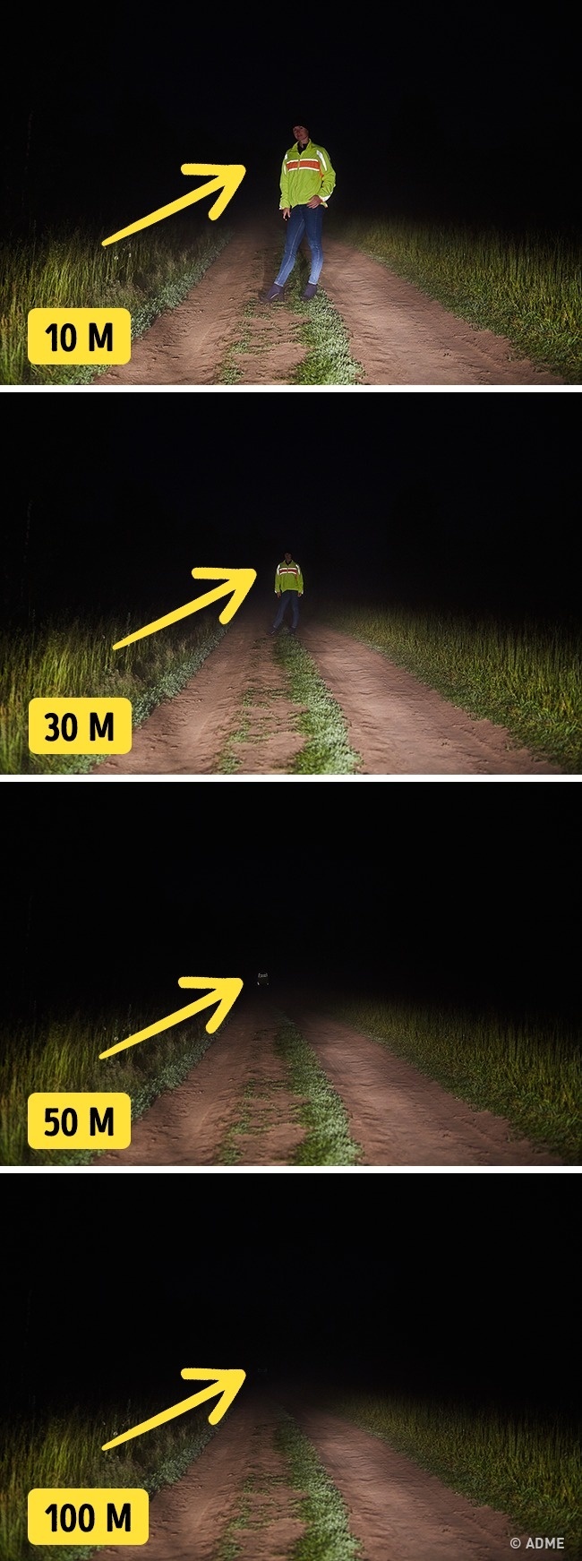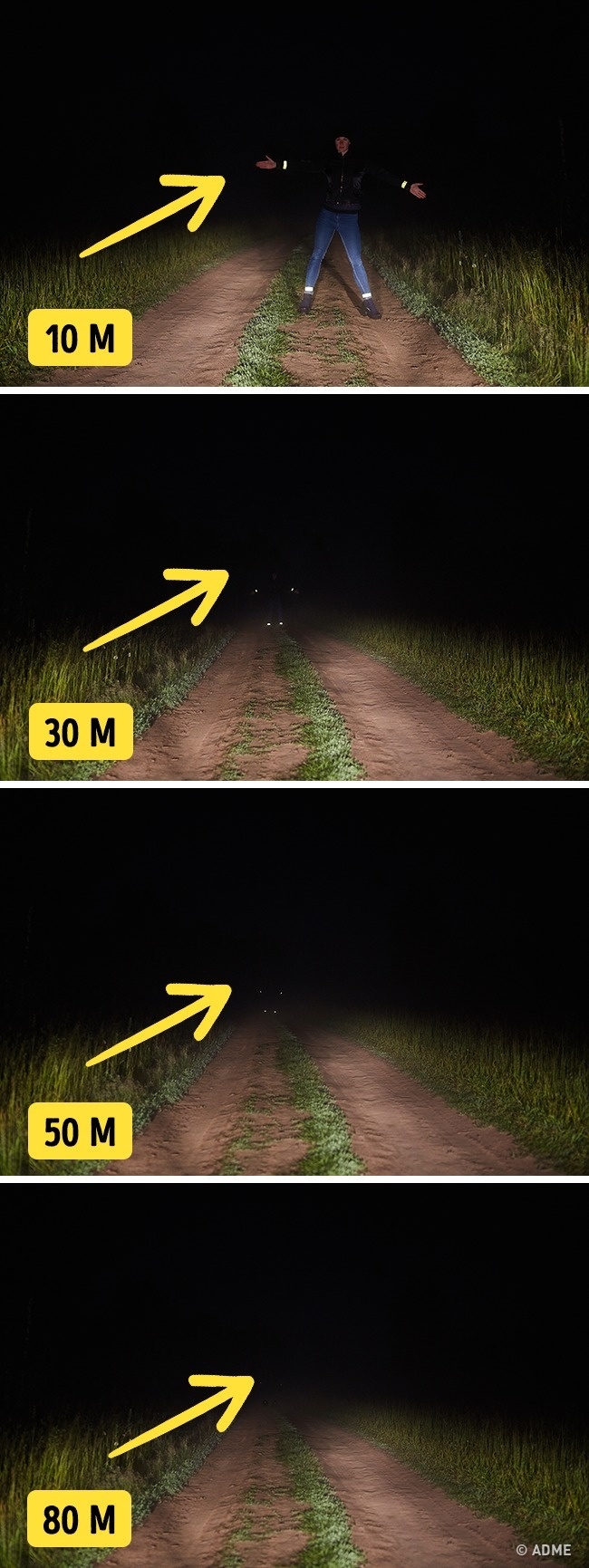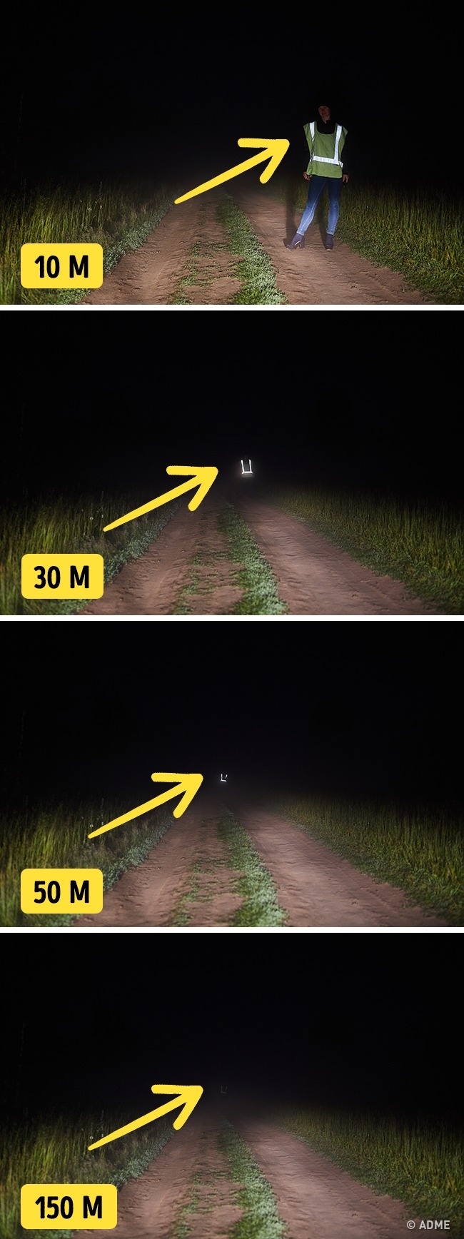 Якщо на дорозі машина їде зі швидкістю 60 км/год, то гальмівний шлях на сухому асфальті буде 23 метри. Це означає, що, побачивши людину в звичайному одязі в 15 метрах, водій не встигне загальмувати.