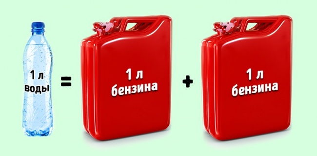 Найпопулярніша тара для продажу питної води — пластикова пляшка об'ємом 0,5 л. В середньому така пляшка води обійдеться вам в 33 рубля. А це означає, що літр води «потягне» на 66 рублів. Тепер візьмемо ціни на бензин: за 1 л бензину зараз просять 37 рублів, а це майже в 2 рази менше, ніж за літр бутильованої води!