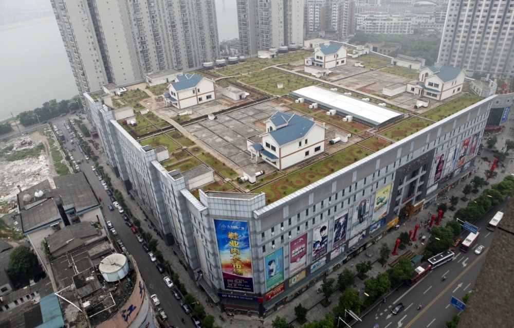 Торговий центр з будинками на даху знаходиться в місті з населенням 4 млн осіб, тому питання з землею під будівництво вирішується іноді такими нестандартними методами. Більше інформації про це будівлі — тут.
