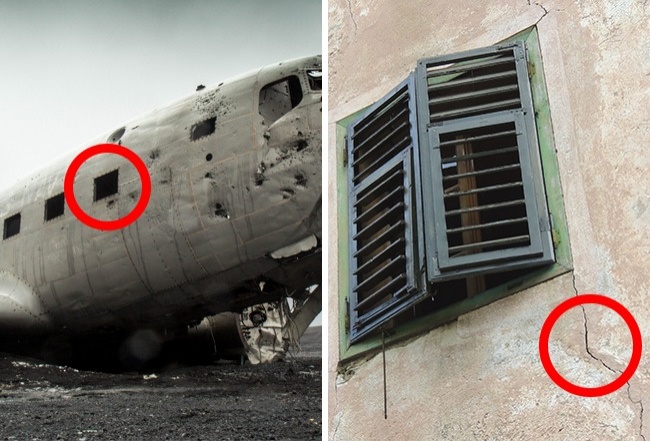 У перших літаків були квадратні вікна. Ця особливість одного разу призвела до катастрофи, в якій загинули 56 людей. Справа в тому, що на кути припадає велике навантаження, яка посилюється під час польоту. Такий же ефект можна спостерігати на старих будівлях, в кутах вікон яких з'являються глибокі тріщини.