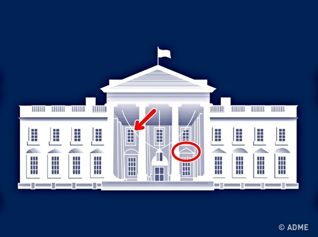 Вже після того, як емблема Білого дому була надрукована, на ній помітили помилку: арка біля одного вікна була неправильної форми і відрізнялася за виглядом від справжньої. Помилку відразу виправили, але допустили ще кілька. На цей раз не збігалися вже кілька арок, а вікна на другому поверсі були розбиті на більшу кількість секторів. Але нічого з цим робити не стали, і логотип залишився таким, як зараз.