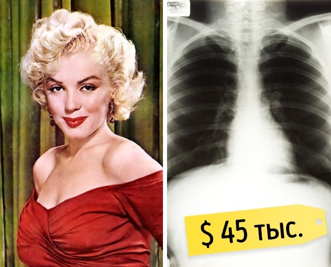 Не менш дивні порівняно з попередніми торги пройшли в Лос-Анджелесі в 2010 році. 3 рентгенівського знімка грудної клітки Мерилін пішли з молотка за $ 45 тис.