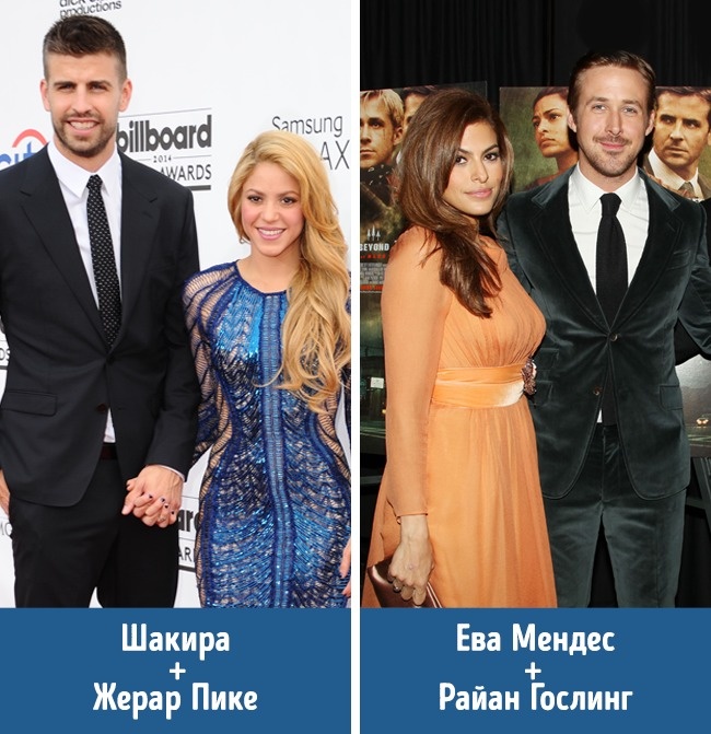 Єва Мендес і Райан Гослінг (6 років разом). Роман почався на знімальному майданчику, але особисте життя пара тримає в строгому секреті. Саме Єві Райан зобов'язаний нагородою за фільм «Ла-Ла Ленд»: «Поки я співав і танцював, моя леді виховувала нашу доньку, була вагітна нашим другим дитиною і намагалася допомогти своєму братові перемогти в битві з раком. Якби не вона, то цю статуетку точно б забрав хтось інший».
