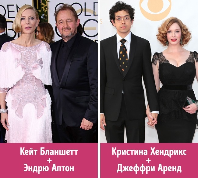 Кейт Бланшетт і Ендрю Аптон. «Коли ми познайомилися, Ендрю здався мені зарозумілим, а я йому — неприступною. А потім ми якось сиділи, балакали, і він несподівано мене поцілував. Я подумала: „От і все!“» Актриса не звертала уваги на зовнішність, і головним для неї було знайти людину, з яким разом можна реалізовувати будь-які творчі плани.