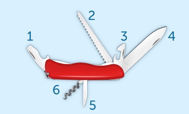 Крихітні швейцарські ножі хоч і виглядають несерйозно, на ділі виявляються крутими багатофункціональними гаджетами. Такий предмет зовсім не займає місця, зате вміє відкривати, різати, пиляти, відвертати, загинати і ще багато чого.