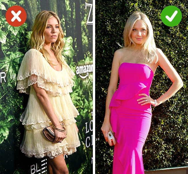 Стилісти рекомендують: найбезпечніший варіант — рюші на рукавах. Вони йдуть всім і ефектно виглядають. Якщо ви не володієте модельними параметрами, намагайтеся уникати суконь, що складаються з одних воланів. Вони «розширюють» фігуру.
