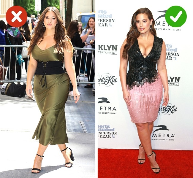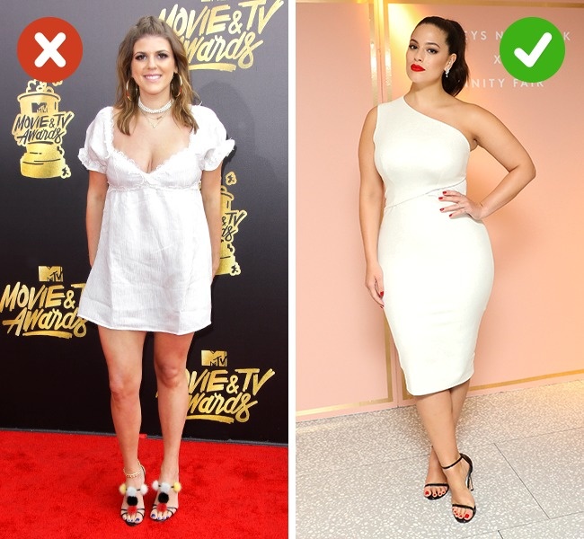 Стилісти рекомендують: Повненьким жінкам варто вибирати плаття довжиною до коліна або трохи нижче, де лінія талії буде зміщена вгору або вниз. Підкреслити груди і візуально подовжити шию допоможе V-подібний виріз.