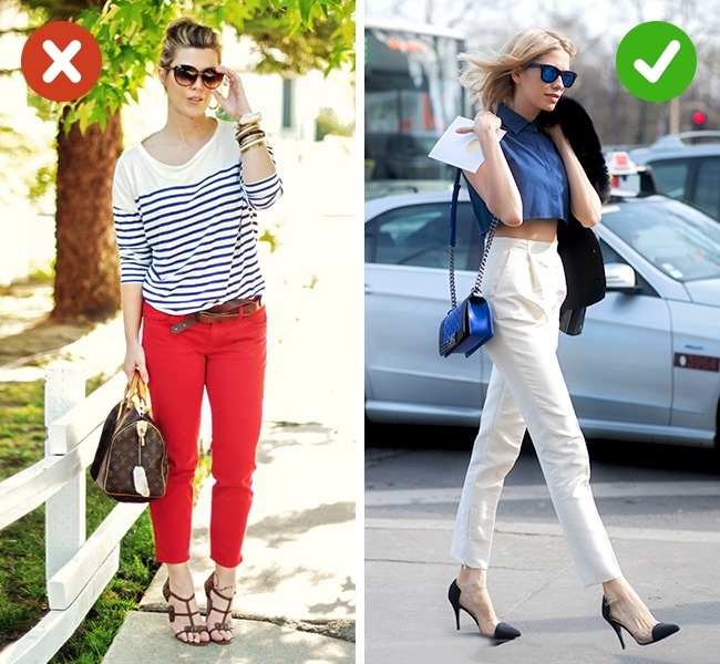 Стилісти рекомендують: Штани до щиколоток яскравих кольорів здатні на контрасті візуально вкорочувати фігуру. Мініатюрним дівчатам краще віддати перевагу моделям спокійних тонів із завищеною талією. І носити такі брюки з підборами.