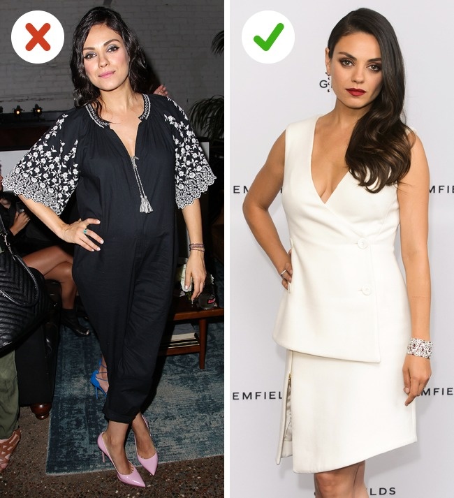 Трапецієподібний силует (як в 60-е роки) без приталених і прилеглих ділянок або сукні в стилі 20-х років прямого силуету — ось що потрібно для створення ідеального образу.
