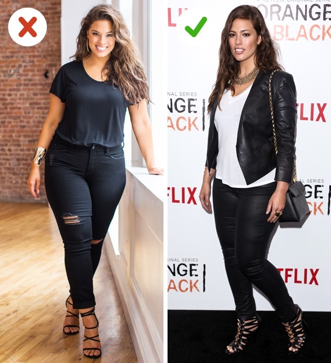 Заправляючи топ, ви малюєте чітку межу в районі живота, яка буде притягувати до себе увагу. Носіть їх навипуск і не в облягаючому варіанті. Довжина повинна бути трохи нижче того місця, де закінчується живіт.